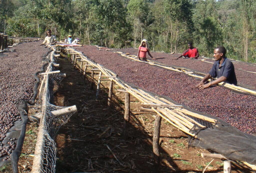 Natural process coffee drying, Ethiopia